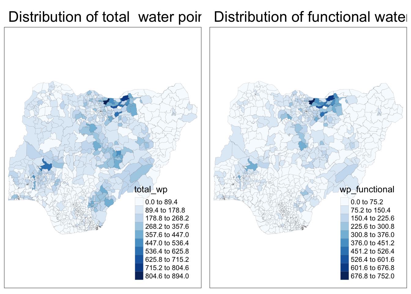 In much of our readings we have now seen the importance to map rates rather than counts of things, and that is for the simple reason that water points are not equally distributed in space. That means that if we do not account for how many water points are somewhere, we end up mapping total water point size rather than our topic of interest.