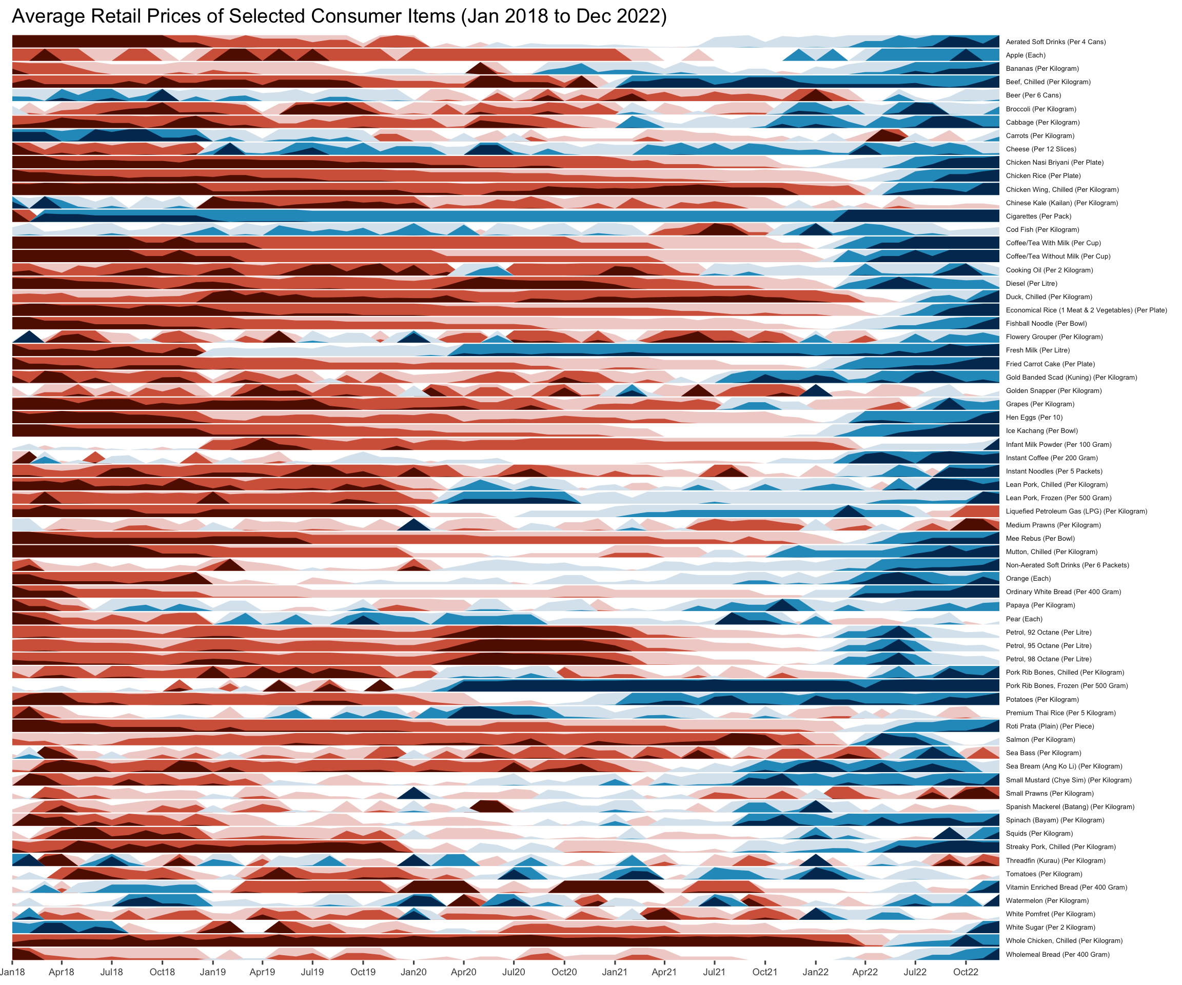 ggtitle('Average Retail Prices of Selected Consumer Items (Jan 2018 to Dec 2022)')